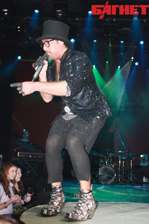 То что, во время выступления Димы на сцене будет работать шоу-балет Freedom не у кого, думаю, не вызывало сомнения, но то, что ведущим будет мистер-эпатаж Дмитрий Коляденко, удивило. Шоумен вышел на сцену с неизменным саквояжем, порадовав очередным невероятным нарядом: «Меня сегодня не так надо встречать! Смотрите, у меня новые шузы! Таких в Киеве еще ни у кого нет! Так что, давайте, порадуйтесь со мной вместе!»