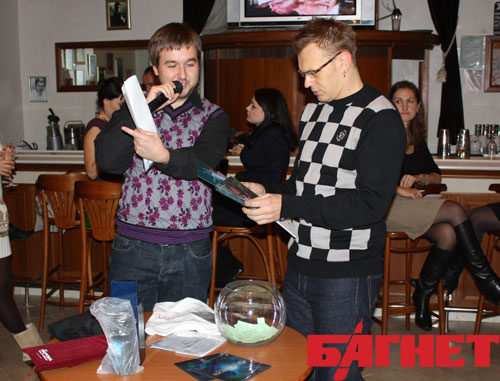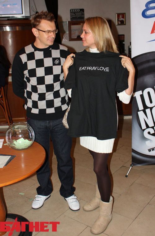 Положинский разыграл не только целое представление перед прессой, «испугавшись» большого количества фотографов, но и ценные призы, среди присутствующих в зале. Коврики для компьютерной мыши достались Мике Ньютон, кошелек со странной надписью «Proposal» - Ане Добрыдневой, а футболка «Ешь. Молись. Люби» - Катерине Серебрянской. Надежно упаковав подарки по сумкам, съев и выпив все, что было на столах, присутствующие, наконец-то, были приглашены в зал для просмотра киноленты.