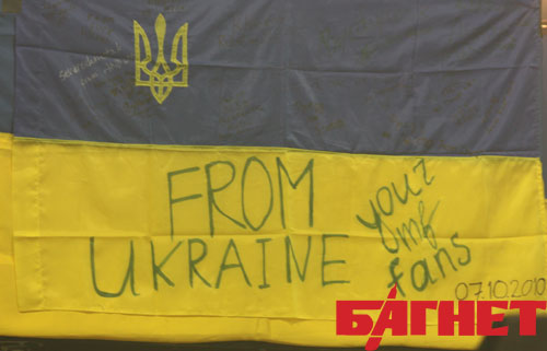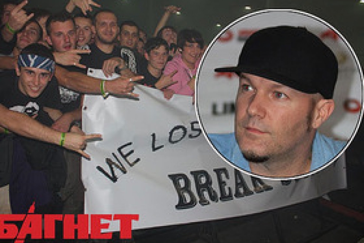 Когда в зале погас свет и раздались первые звуки, журналисты все еще оставались на улице. Но мы, собственно никуда и не спешили. Прошел час, полтора. Первая команда играла на сцене не менее 40 минут, следом за ней вышла вторая. Мы обеспокоенно спрашиваем организаторов: «Когда выступают Limp Bizkit», и слышим в ответ: «Не беспокойтесь, раньше девяти не начнут». Судя по эмоциям в зале, разогрев зрителям пришелся по душе. Но не смотря на это, в перерывах между выступлениями народ скандирует: «Limp-Biz-kit!» и ждет своих героев. Ближе к 21:00, выносят заветные разрешения на фотосъемку, которые мы получаем в обмен на заполненную бумагу. Что конкретно в этой бумаге написано, толком не знает никто – она на английском, а вчитываться и начинать переводить нет ни времени, ни особого желания. Кровью скрепить не сказали – и на том спасибо. Значит, душу продать не предлагают, а остальное – мелочи. В зале – огромное столпотворение. Счастливчики оказавшиеся впереди держат плакат с качественной напечатанной (а не написанной, как обычно чье-то дрожащей рукой), надписью. На сцене украинский двуколор, исписанный маркером. К счастью, пронационально настроенных элементов в зале не обнаружилось, иначе не избежать было бы Limp Bizkit иска в суд «за знущання з нацiонального символу Украiни», ну, или что-то в этом роде.