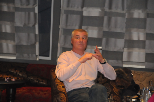 В самом дальнем углу у единственного работающего телевизора, по которому шел футбол, я заметила знакомое лицо. Анатолий Демьяненко сидел, отвернувшись от телевизора с футболом и глядел на выступление танцовщиц.