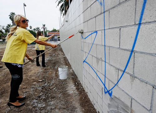 29-летняя светская львица Пэрис Хилтон в рамках программы Благоустройства Голливуда отбывала свое наказание в пятницу в Лос-Анджелесе, об этом пишет американское издание USmagazine. Сверкая красными солнцезащитными очками и высокими каблуками от Christian Louboutin, она закрашивала бандитские граффити на городских стенах.