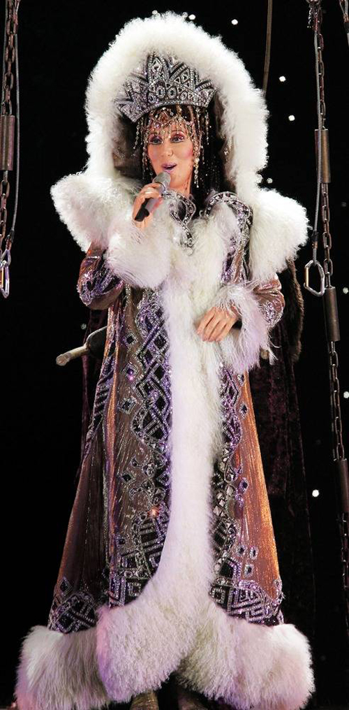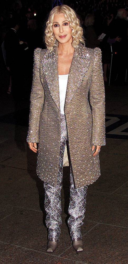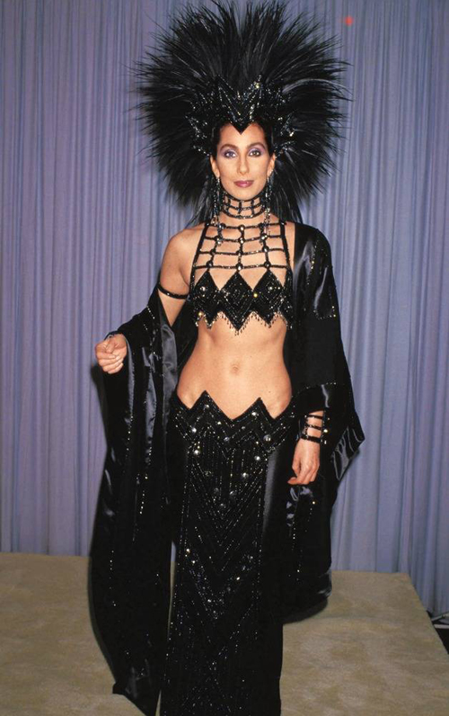 Никто так не умеет заявлять о себе в плане моды или диктовать свой стиль, как Шер. Леди Гага? Да ладно. В 60-ых черноволосая половина дуэта Сонни и Шер носила челку, брюки-клеш и короткие жилеты и сильно подводила глаза черным карандашом, став иконой стиля для хиппи в а-ля Калифорния. 10 лет спустя она взорвала телеэкраны своим стройным силуэтом с оголенным пупком и откровенными нарядами от Боба Маки. 80-ые и 90-ые Шер провела в кожаных куртках, колготках и чулках в сетку. На церемонию вручения Оскара она явилась в наряде от Боба Маки, который она назвала «произведением искусства, как внутри, так и снаружи».