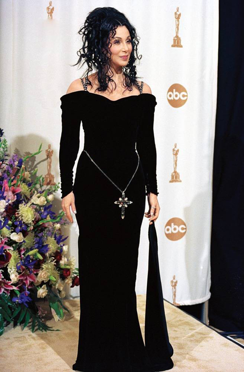 1986 год. В ответ на критику Академии за ее роль в «Маске» («Они сказали, что я одеваюсь несерьезно, а мои кавалеры слишком молоды»), Шер явилась на церемонию вручении в этом улетном наряде. «Я была около трех метров высотой вместе с головным убором».