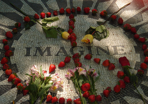 Вдова Джона Леннона, Йоко Оно отказалась предавать мужа земле. Урна с его прахом и сейчас находится в ее квартире. Местом паломничества, куда ежегодно съезжаются сотни поклонников основателя группы «The Beatles» является мемориал Strawberry Fields Forever, в нью-йоркском Централ-парке, напротив дома «Дакота», в котором жил и возле которого погиб Леннон. Мемориал был открыт спустя пять лет после трагедии унесшей жизнь легендарного музыканта. На нем мозаикой выложено всего одно слово: «IMAGINE», которое круглый год украшают живые цветы и свежая клубника, изображающие знак пацифиста.
