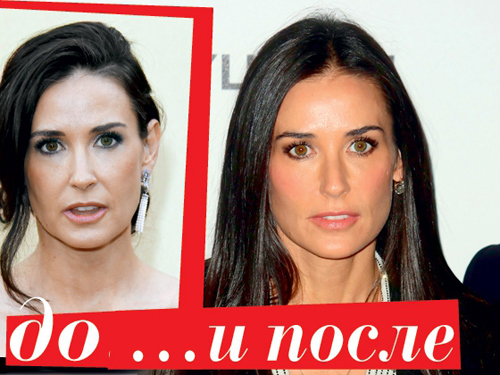 Деми Мур тоже раньше не могла глядеть на свой носик без содрогания. Зато теперь - это главная гордость американской знаменитости. Кончик чуть приподнят, а маленькая горбинка удалена. Да и под носом теперь все гладко - хирурги разгладили носогубные складки благодаря введению все тех же волшебных филлеров.