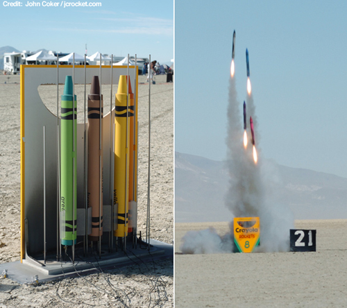 Изобретатель создал ракеты в виде цветных карандашей Crayola. Довольно оригинально.