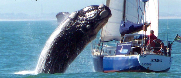 Влюбленная пара, решившая понаблюдать за китами с яхты недалеко от Кейптауна, даже и не надеялась увидеть одного из них так близко: 40-тонное млекопитающее выпрыгнуло из моря и упало на их судно.