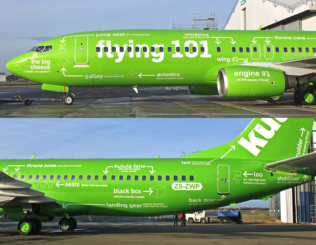 Авиакомпания Kulula Air разукрасила свои самолеты, как авиационный путеводитель для чайников с указаниями, где находится двигатель и где сидят пилоты.