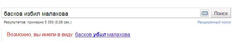Любопытные результаты «Багнет» обнаружил при попытке поиска ссылок на эту информацию. При введении в поисковую строку Google фразы «Басков избил Малахова», сайт услужливо предоставил автозамену: «Басков убил Малахова».