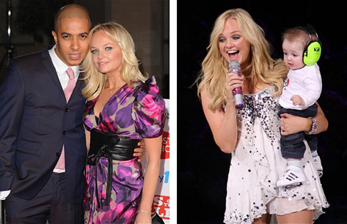 Эмма живет со своим партнером – бывшим певцом Джейдом Джонсом (слева) уже десять лет. У них есть сын Бью (справа), который появился с мамой на концерте Spice Girls в Нью-Йорке в 2008 году.