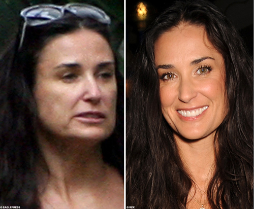 48-летняя Деми Мур призналась, что иногда, смотря на себя в зеркало, она подумывает о том, чтобы удавиться. Актриса, которая потратила безумные деньги на пластическую хирургию, а также, на ботокс, признается, что ей ничего не помогает.