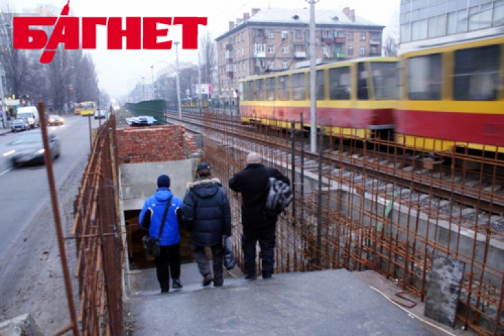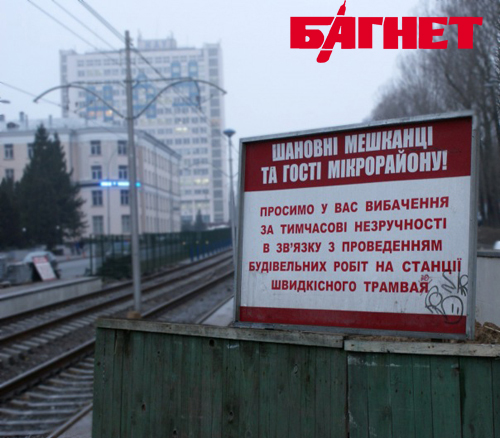 Киевская власть рапортует об успехах в реконструкции линии скоростного трамвая, а пассажиров здесь встречают строители, недострой и кучи строительного мусора