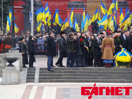 Сегодня состоялось торжественное возложение цветов в честь Дня Соборности к памятнику Тарасу Шевченко в Киеве.