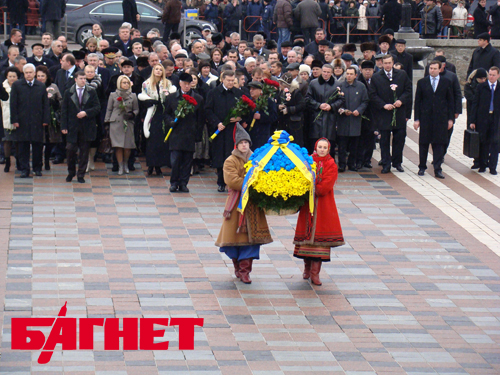 После возложения цветов Президент принял участие в торжественных мероприятиях во Дворце «Украина».