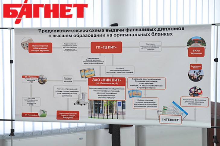 На сегодняшней пресс-конференции заместитель генерального директора информационного агентства «Наш Продукт» Олег Руденко рассказал о результатах журналистского расследования, посвященного получению фальшивых дипломов о высшем образовании. Как уже писал «Багнет», было установлено, что ЗАО «НИИ ПИТ» вольно или невольно способствует торговле фальшивыми дипломами на оригинальных бланках или с использованием оригинальной защитной пленки с голограммами.