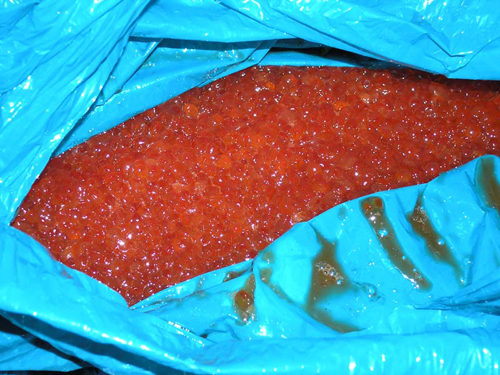 Пограничники и таможенники во вторник, 25 января, изъяли 100 кг икры у проводника поезда «Уфа-Хрьков». Как сообщает пресс-секретарь Харьковского погранотряда, в пункте пропуска «Тополи» при осмотре 5-го вагона поезда в купе №9 был обнаружен тайник. В углублениях в полу вагона в рундуках нижних сидений под резиновым покрытием обнаружилось 100 кг красной икры, расфасованной в мусорные пакеты. Выяснилось, что контрабанда принадлежит проводнику, 39-летнему гражданину Украины. Никаких документов и сертификатов на свой товар проводник не представил. А потому центнер деликатеса стоимостью 45 тыс. гривен после соответствующего решения суда подлежит уничтожению. За последние 3 дня это уже третья попытка ввоза в Украину икры лососевых рыб. Накануне работник вагона-ресторана поезда «Москва-Черновцы» пытался провезти ведро с 25-ю килограммами икры, но дальше Сумской области не уехал. Еще за день до этого пассажирка автобуса «Ростов-Одесса» в девяти пластиковых емкостях пробовала провезти 27 килограммов деликатесного продукта.