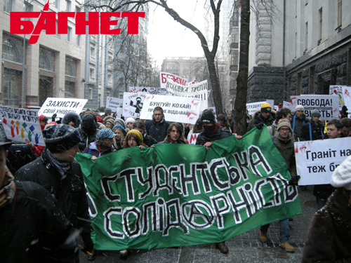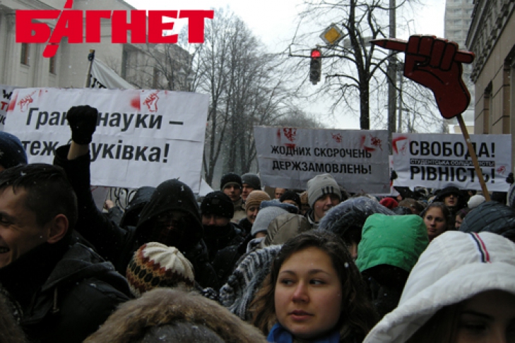 «Первое - мы протестуем против законопроекта «О высшем образовании», который сейчас с позиции Табачника пропихивает группа депутатов во главе с Ефремовым. Второе – мы требуем отменить позицию о 40-процентном сокращении госзаказа. Третье наше требование – предоставить реальную автономию высшим учебным заведениям. Четвертое требование – поднять наши стипендии до уровня прожиточного минимума. И пятое требование – это поднять зарплаты преподавателям», - говорит Илья Крутенко, представитель общественного движения «Видсич».