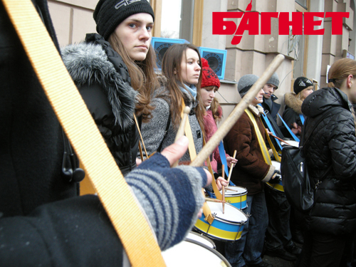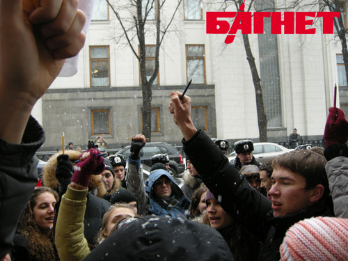 Собралось на это мероприятие больше ста человек. В основном – студенты Киево-Могилянской Академии. Но, как уверяет Крутенко, желающих поучаствовать в акции протеста было бы намного больше, если бы студенты других университетов не отдыхали на каникулах. Они, что называется, душой были с митингующими.