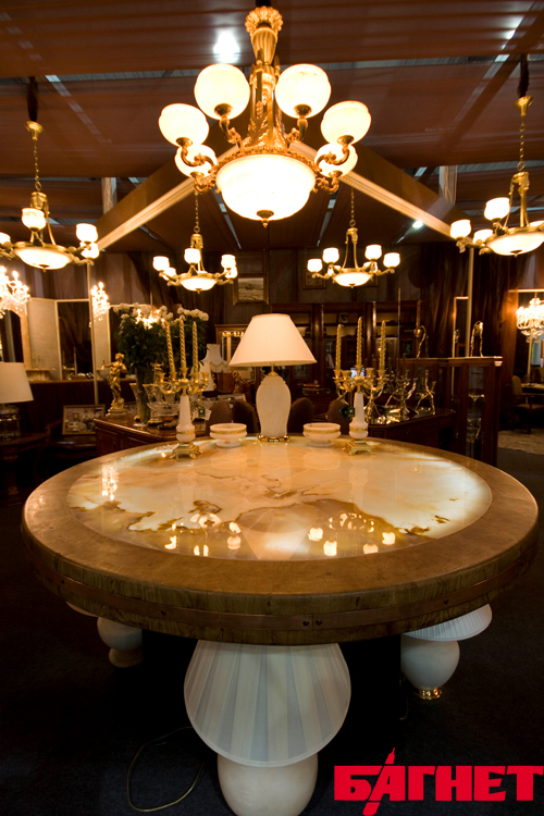 Если выключить свет, ониксовый стол будет продолжать светиться в темноте