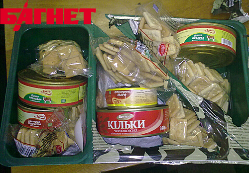 По иронии судьбы, именно в этой воинской части через полчаса начнется брифинг, посвященный нормализации поставок питания военным. В распространенном СМИ пресс-релизе говорится, что «новые поставщики питания объявят о возобновлении полноценных поставок и подтвердят несостоятельность угроз о голоде в частях». Как видим, за несколько часов до объявления «полноценных» поставок, голода в армии действительно нет, но назвать сухари и консервы полноценным питанием язык не поворачивается. (см. фото)
