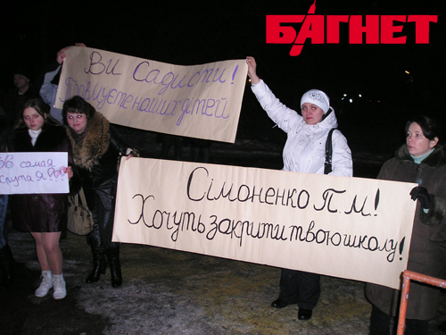 Напомним, как сообщал «Багнет», согласно разработанной Донецкой областной государственной администрацией Дорожной карты по оптимизации сети общеобразовательных школ, в области в 2011 году планируется закрытие 26 учебных заведений, что составляет 2,5% от общего количества школ региона. Родители учащихся школы № 136 опасаются, что именно их школа попадет под оптимизацию и будет закрыта. Они требуют сохранить единственную в Буденновском районе Донецка школу с украинским языком обучения.