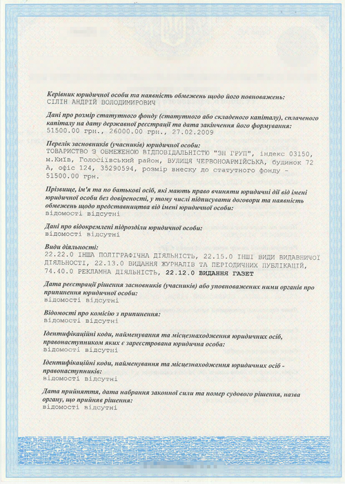 К слову, взятая в ходе эксперимента справка из Единого госреестра касается состава учредителей «новой» газеты «Зеркало недели. Украина», которая создана семейством Мостовых в качестве клона «Зеркала недели» (см.документы ниже). Предположительной причиной такого абсурдного «ребрендинга» вполне могли стать судебные иски, адресованные редакции этого некогда авторитетного, а сейчас изрядно пожелтевшего, издания. Журналист газеты по фамилии Бутусов упорно не желает являться в суд, чтобы объяснить свои клеветнические высказывания в адрес крупного украинского производителя, среди ненавистников которого числится и глава ликвидированного Госкомпредпринимательства Бродский. Творческий тандем Бродский-Бутусов неоднократно поливал грязью консорциум «ЕДАПС», за что отечественный производитель, вполне закономерно, подал иски. И если г-на Бродского через суд уже заставили извиняться, то клеветник Бутусов все еще в «бегах». Видимо, попросту не знает, чем подтвердить правдивость своей писанины. Но это, как говорится, уже совсем другая история…