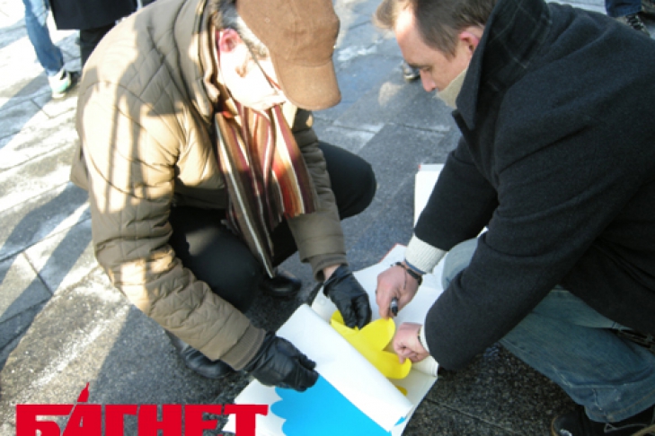 Прохожим было предложено написать на наклейках слова, без которых они не могут жить, и наклеить их на забор. В результате зеленый забор украсили разноцветные наклейки с надписями: «Любовь», «Жизнь», «Свобода», «Независимость», «Демократия».