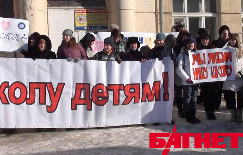 Ученики и родители требуют не закрывать русскоязычную школу в центре Донецка (ФОТО)
