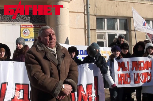 Более 100 учащихся, родителей и учителей общеобразовательной школы №2 города Донецка провели в среду, 16 февраля, акцию протеста против закрытия их учебного заведения. Как сообщает корреспондент «Багнета», собравшиеся, среди которых преобладали дети, держали в руках плакаты с надписями: «Оставьте школу детям!», «Мы любим нашу школу!», «Мы хотим закончить нашу школу», «Нужна земля?» и так далее. Школьники пришли на акцию с черными надувными шариками. «Если бы шарики были цветными, то они бы символизировали школьный праздник, но так как нашу школу закрывают, мы символизируем траур», - объяснил один из учащихся. В защиту школы с русским языком обучения выступила пророссийская партия «Русский блок», активисты которой пришли на акцию со своими партийными флагами. Аргументы городских властей в пользу закрытия школы, которая находится в самом центре Донецка, в непосредственной близости от Донецкой областной государственной администрации, сводятся к тому, что при плановой нагрузке 650 учеников, в ней обучается всего 372 ученика.