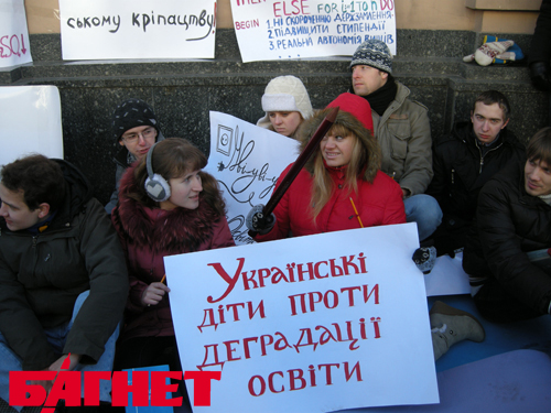 Стоит отметить, что к киевским студентам присоединились также учащиеся львовских вышев. Они говорят, что во Львове тоже недовольны реформами высшего образования и готовы поддерживать своих киевских «коллег» в попытках предотвратить принятие законопроектов «О высшем образовании».