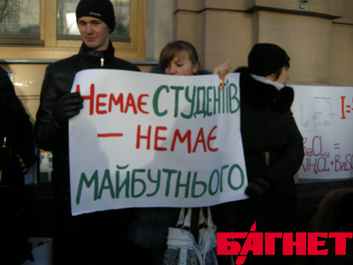 «Пока во Львове никаких акций протеста не было, потому что в Киеве можно пойти под Комитет, а нам пока некуда идти. Но если чиновники совсем не будут прислушиваться к нам, и будет необходимость в массовых акциях протеста, то львовские студенты без проблем приедут сюда и примут в них участие», - рассказала студентка Львовского национального университета им. Ивана Франка Ирина Чуливская.