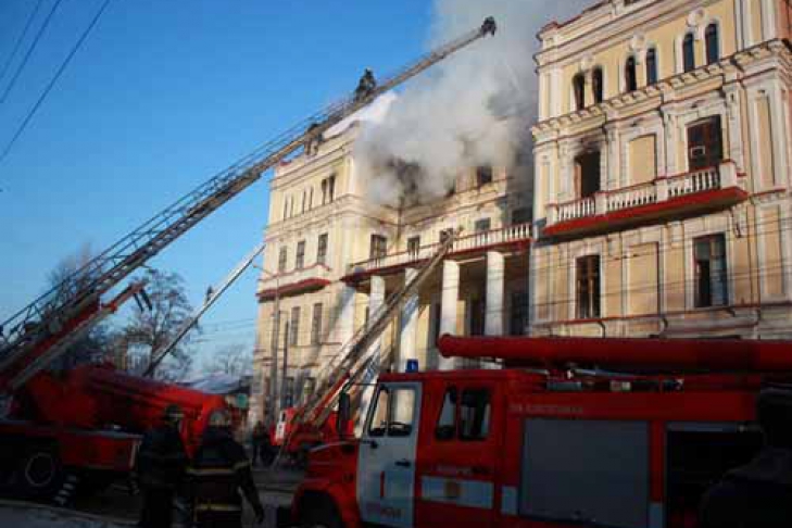 17 февраля в 00:47 в Главное управление Министерства чрезвычайных ситуаций Украины в Луганской области от сторожа городской консультативно-диагностической поликлиники №7 города Луганска поступило сообщение о пожаре. Возгорание произошло на первом этаже здания поликлиники в рентгеновском кабинете, сообщает пресс-служба ГУ МЧС области. Из-за того, что вызов поступил с опозданием, а построенная в 1908 году поликлиника имеет много ниш в своей конструкции, пожар быстро распространился с первого по четвертый этаж (всего 4 этажа) на площади более 400 кв.м. «Был объявлен 3-й высший номер вызова. На месте происшествия работают более 20 единиц специальной пожарной техники и более 100 человек личного состава. Погибших и пострадавших нет. Причины возгорания устанавливаются», - говорится в сообщении. Как передает корреспондент «Багнета», сейчас горят все четыре этажа. Перекрытия в центральной части здания обрушились, остались только лестничные площадки справа и слева. Вследствие пожара полностью обрушилась крыша здания. Из здания пытаются вынести оргтехнику, архивные документы. Сотрудники МЧС обезопасили от пожара соседние здания, в частности, музей МВД, по улице перекрыто движение транспорта.