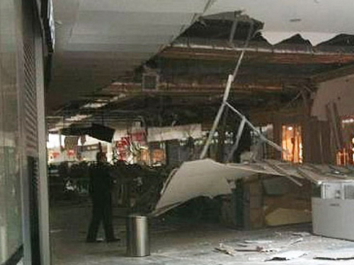 По словам очевидцев, потолок обвалился на аллею между магазинами, где находятся небольшие торговые точки. Крыша рухнула на магазинчик, в котором продавали часы.