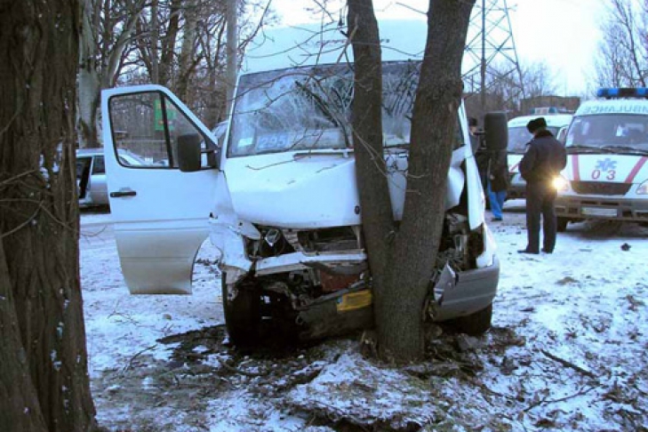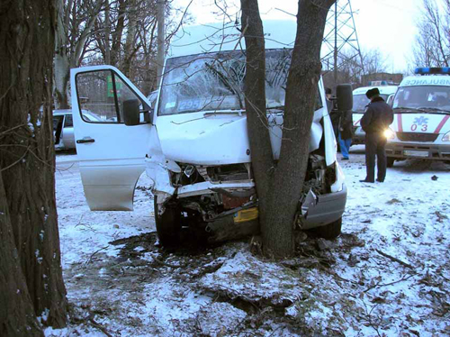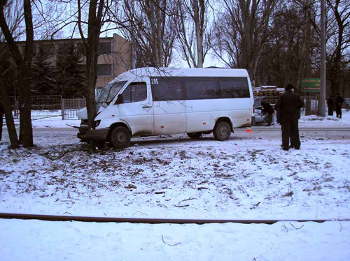 Как сообщает пресс-служба Департамента ГАИ МВД Украины, ДТП произошло в пятницу, 18 февраля. Водитель автомобиля «Mitsubishi Lancer», выезжая из дворового проезда типографии, не предоставил преимущество в движении и допустил столкновение с рейсовым автобусом «Mercedes-Benz 312D». После столкновения водитель автобуса совершил наезд на дерево.