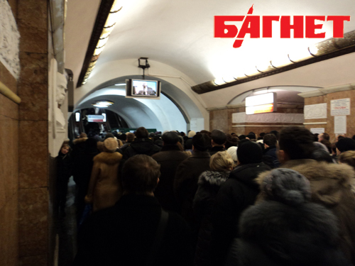 Как сообщает корреспондент Багнета, сегодня, 22 февраля, на станции метро «Университет» по техническим причинам на протяжении 10 минут был отключен один из двух работающих эскалаторов, который должен, транспортировать людей наверх. В результате поломки, сперва возле эскалаторов, а после и на перроне образовались живые пробки.