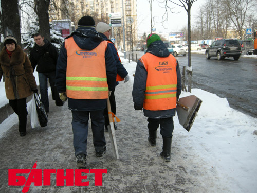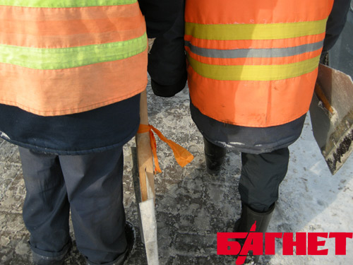 Интересная деталь, которой хотелось бы поделиться с читателями - некоторые из работников повязали на свои снегоуборочные лопаты «помаранчевые ющенковские» ленточки времен Оранжевой революции. Это либо скрытый протест, либо лопаты у работников коммунальных служб не обновлялись с 2004 года.