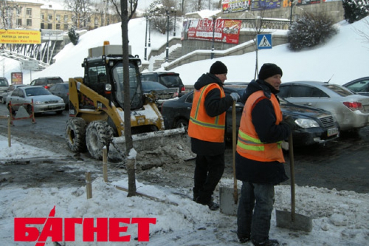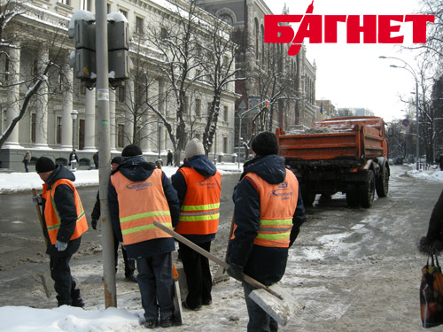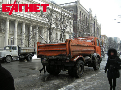 Действительно, на уборку центра столицы была брошена вся «тяжелая артиллерия» коммунальных служб. Усиленно чистили дороги на ул. Институтской, у Администрации Президента, на Майдане и на Крещатике. Всего корреспондент «Багнета», прогулявшись от АП до Майдана, насчитал более десятка разнообразной снегоуборочной техники и более трех десятков работников. Оно и понятно – центр столицы не должен быть завален снегом.