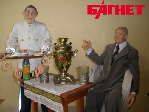Стоит отметить, что Виктор Янукович уже вторично фигурирует в композициях Михаила Коломея. Первый раз он был создан в виде моряка за корабельным штурвалом еще в 2004 году - в бытность своего премьерства. Как утверждает сам Коломей, первое изваяние Партия регионов подарила своему лидеру, и сейчас кукла находится дома у Президента Украины. Сейчас в коллекции, выставленной в пассажирском комплексе Одесского морского вокзала, - более 60 кукол. Все они изготовлены из вышеназванного материала, с нюансами чисто местного колорита.