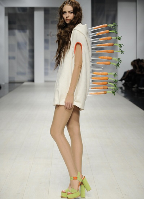 Украинским дизайнерам не чужда экологическая тематика. Эко-модель из коллекции сезона весна-лето/2011 Елены Бурениной
