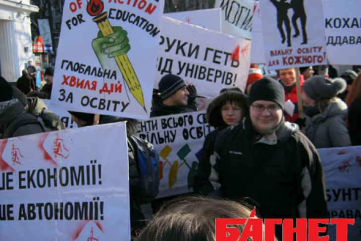 Напомним, в Киеве проходят многочисленные акции протеста студентов направленные против нововведений, запланированных в этом году Министерством образования и науки, молодежи и спорта. Один из таких митингов прошел сегодня.
