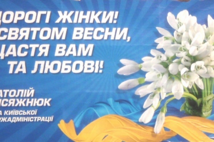 «На днях на дорогах Киевской области появились билборды, с которых политики поздравляют женщин с праздником 8 марта. Среди таких приветствий и пожелания «счастья и любви» от имени председателя Киевской областной государственной администрации Анатолия Присяжнюка. Поздравительный билборд украшен большим изображением букета подснежника складчатого - растения, занесенного в Красную книгу Украины, и запрещенного для сбора и продажи», - говорит Алексей Василюк, заместитель председателя Национального экологического центра Украины.