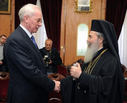 Теофил III наградил Азарова золотым крестом, короной, венком и звездой.