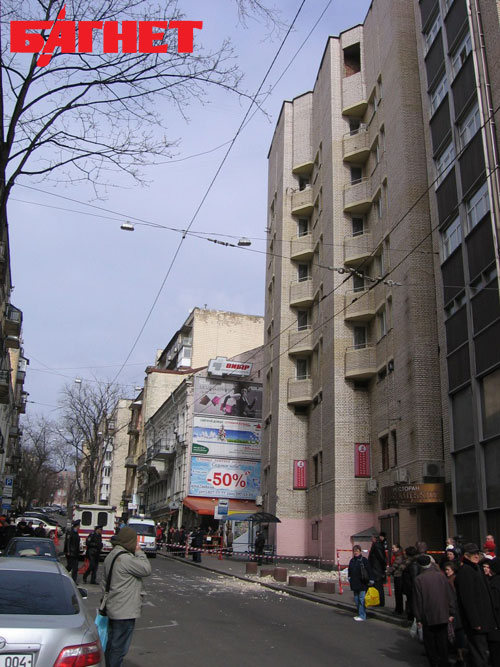 Сегодня, 24 марта, в центре Киева на Майдане Незалежности, на конечной остановке троллейбуса №18 на улице Малая Житомирская около 10:20 упавшими, по предварительным данным, с 8 этажа здания отеля «Козацкий» кирпичами был убит молодой человек.