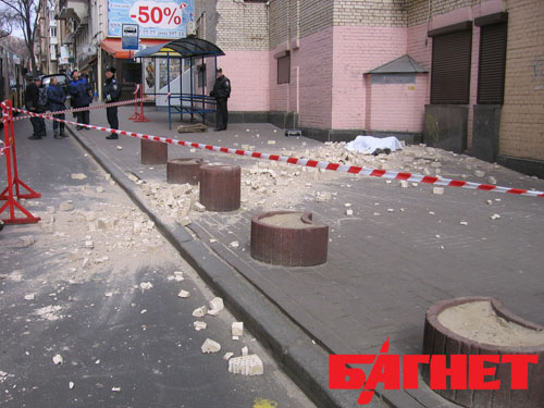 В Киеве мужчина, ожидавший на остановке троллейбуса, был убит упавшими с балкона кирпичами (ФОТО, ВИДЕО)
