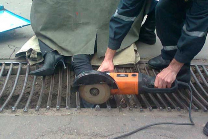 Ее нога застряла в металлической решетке ливневки