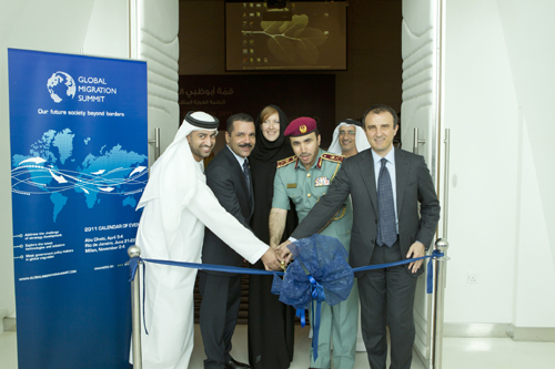 Торжественное открытие форума ID World 2011 в Абу-даби. Слева направо: генеральный директор Службы по вопросам идентификации ОАЭ доктор Али Аль Кхоури, генеральный секретарь INTERPOL Рональд Ноубл, президент компании Wise Media (организатор ID World) Софи Б. Де ла Гирода, генеральный директор полиции Абу-Даби (ОАЭ) генерал-майор Ахмед Н. Аль Рази, глава отдела международных отношений Дирекции внутренних дел Еврокомиссии Луиджи Сорека (первый справа)