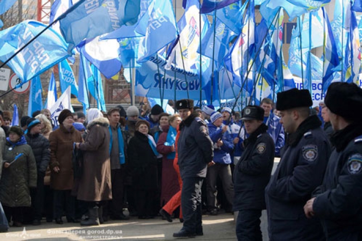 До 10 тыс. протестующих находятся возле Верховной Рады и в Мариинском парке. Они держат атрибутику Партии регионов, а также лозунги «Долой оранжевую власть, мы за Януковича» и скандируют «Геть».