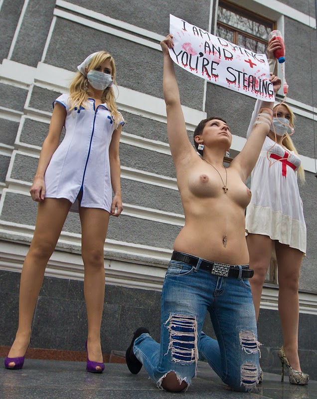 «Эпидемия рака, отягощенная хроническим разворовыванием казны и патологическим цинизмом чиновников от медицины, ежедневно убивает сотни украинцев. Отсутствие государственной программы борьбы с раком и недостаток финансирования украинских онкоцентров – общие фразы, за которыми власть прячет налаженную коррупционную схему обогащения чиновников в халатах», - заявили девушки из FEMEN.