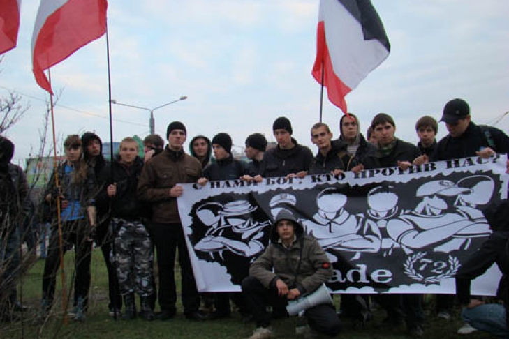 17 апреля в Харькове состоялся всеукраинский марш против миграции. Впрочем, «всеукраинским» он остался только в названии этой молодежной акции. К месту сбора участников марша возле станции метро «Ботанический сад» в Вербное воскресенье собралось несколько десятков молодых людей, которые с флагами прошли до Советской площади. Акция проходила мирно и спокойно – участники шествия никого не трогали и не оскорбляли.