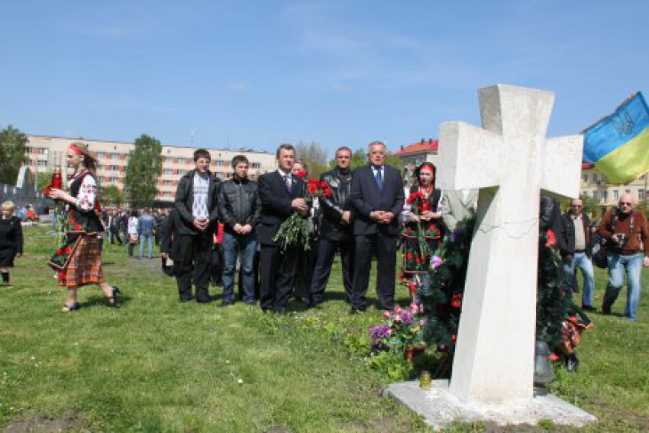 Милиция не разрешила представителям Партии регионов во главе с депутатом Верховной Рады Петром Писарчуком возложить цветы к мемориалу советским солдатам во Львове